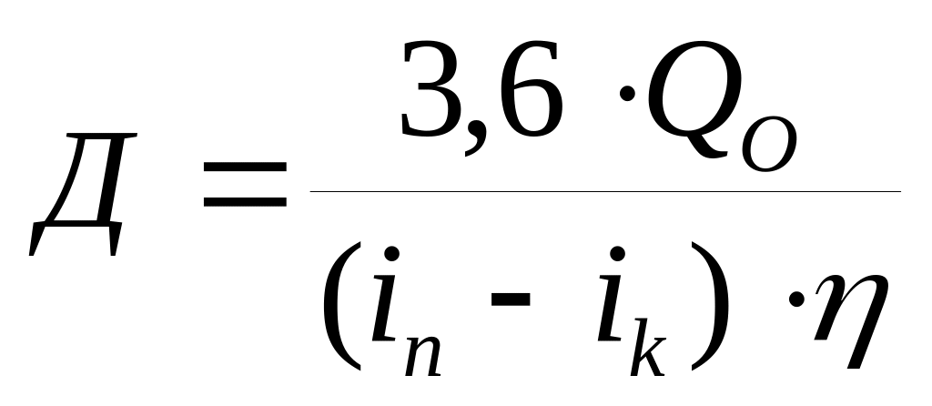де in, ik – ентальпія відповідно водяної пари і конденсату, ккал/кг; – коефіцієнт використання теплоти, 0,950,98: