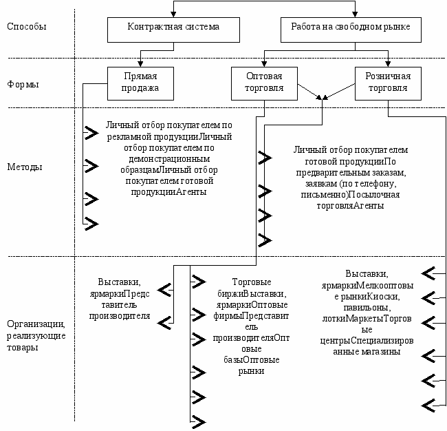 - •Способы реализации товаров: контрактная система; работа на свободном рынке.