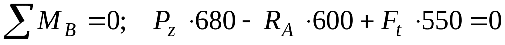 Знаходимо реакції опор від дії окружних сил: