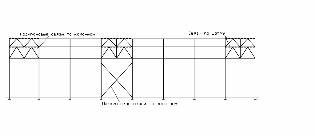 Система связей между колоннами обеспечивает во время эксплуатации и монтажа геометрическую неизменяемость каркаса, его несущую способность и жесткость в продольном направлении, а также устойчивость колонн из плоскости поперечных рам.
