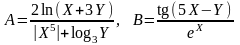 A:=2*LN(X+3*Y)/(ABS(EXP(5*LN(X))))+LN(Y)/LN(3);