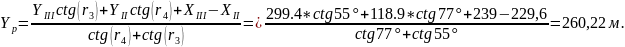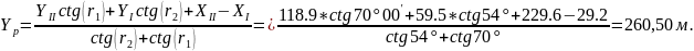 В1=371.1 м, В2=180,7 м – базисы прямой засечки (расстояние между пунктами опорной сети) определяется решением обратной геодезической засечки.