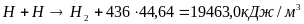 Складывая энергии синтеза атомов и молекул водорода, получим (7322,3 + 19463,0) = 26785,3 кДж. Чтобы получить один кубический метр водорода по существующей технологии, необходимо затратить (4,0х3600)=14400 кДж. Показатель тепловой энергетической эффективности такого процесса электролиза составит (табл. 42) [109]