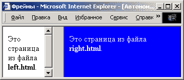 Структура фреймов описывается в специальном файле. Таким образом, для создания страницы с двумя фреймами надо по крайней мере три файла: в одном описывается структура, а в двух других — страницы, которые будут показаны в первом и втором фреймах.