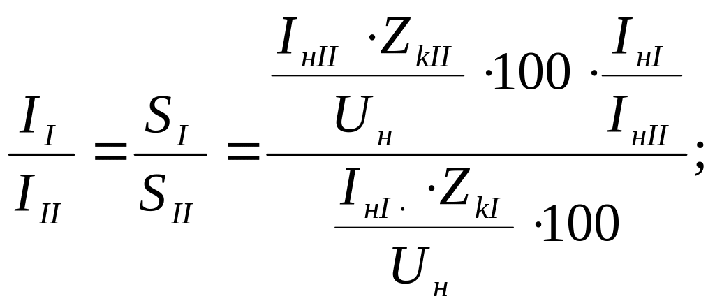 2. Напряжения короткого замыкания параллельно работающих трансформаторов должны быть одинаковыми, т.е.UKI=UKII=UKIII