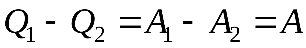 Отже, в результаті циклу газ, отримавши кількість теплоти Q1 від нагрівача і передавши частину цієї теплоти Q2 холодильнику, виконує зовнішню роботу, що дорівнює А.
