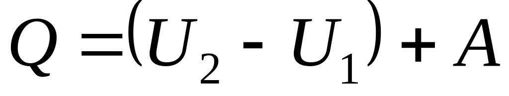 Нехай деяка система, наприклад, газ у циліндрі під поршнем, характеризується внутрішньою енергією U1, отримала деяку кількість теплоти Q 5 і, перейшовши у новий стан з внутрішньою енергією U2, виконала зовнішню роботу А. Таким чином, зміна внутрішньої енергії системи дорівнює різниці теплоти, отриманої системою, і роботою, яку вона виконала: