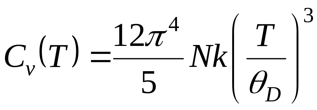 Закон Дебая стверджує, що при низьких температурах теплоємність твердого тіла зростає пропорційно кубу температури. Цей закон справедливий для діелектриків і напівпровідників при температурах, набагато менших за температуру Дебая, яка є характеристикою кожної конкретної речовини. Знаючи температуру Дебая, теплоємність при сталому об’ємі можна оцінити за формулою