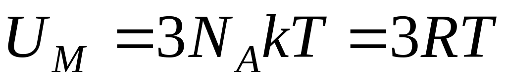 За теоремою про рівнорозподіл енергії по ступенях вільності на кожний осцилятор припадає енергія kT. Тому внутрішня енергія 1 моля твердого тіла