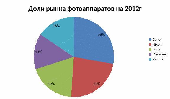 Для более наглядной оценки ситуации на рынке фотоаппаратов представим данную информацию на Диаграмме: