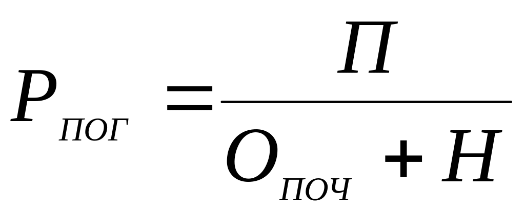 Рівень погашення кредитів (РПОГ) визначається відношенням суми погашених кредитів до суми залишків кредитних вкладень на початок періоду й наданих протягом року кредитів: