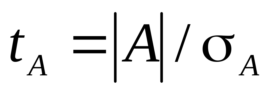 Возможен и другой способ проверки соответствия, но только нормальному закону. Он основан на том, что асимметрия и эксцесс нормального закона равны нулю. Оценивая степень отклонения фактических значений асимметрии и эксцесса от нуля с помощью какого-либо критерия, можно сделать заключение о соответствии или несоответствии распределения случайной величины нормальному закону. Обычно используется критерий распределения Стьюдента (см. табл.2.10), а при большом числе исходных данных – критерий нормального закона (см. табл.2.7). Проверяют две гипотезы: при числе степеней свободы k = n – 1 асимметрия А = 0 и эксцесс Е = 0. Согласно формуле (2.24) имеем
