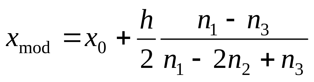 где x0 – середина класса с максимальной частотой.