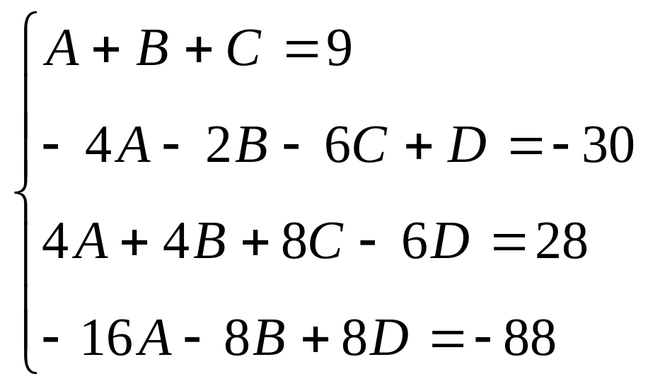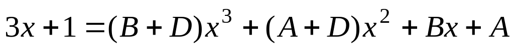 Приравнивая коэффициенты при одинаковых степенях х правой и левой частей соотношения,:имеем: