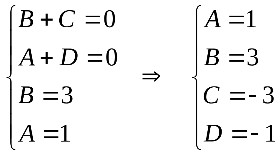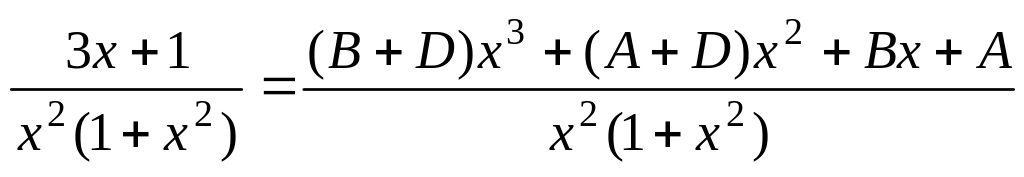 Приводя правую часть соотношения к общему знаменателю и приравнивая числители правой и левой частей, получаем: