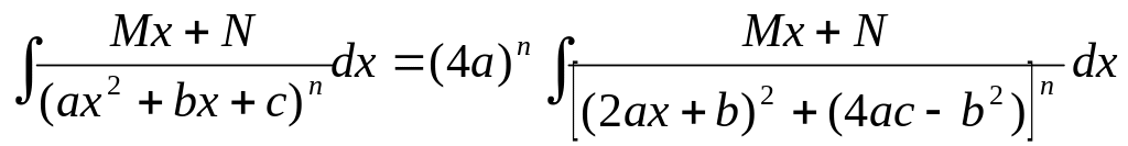 Для вычисления интеграла четвертого вида сначала необходимо воспользоваться следующим преобразованием: