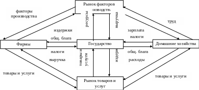 Разумеется, устройство экономики на самом деле гораздо сложнее, чем подобная схема. Например, одно и то же благо может одновременно быть и фактором производства, и товаром. Скажем, некая фирма выпускает станки. Она поставляет их на рынок товаров и услуг, а другая фирма приобретает эти станки для использования в собственном процессе производства, т.е. для неё это – рынок факторов производства. Но всё же основные направления взаимодействия на данной схеме представлены весьма наглядно.