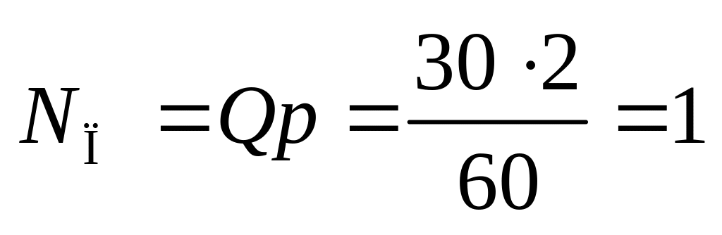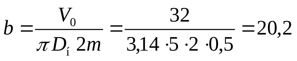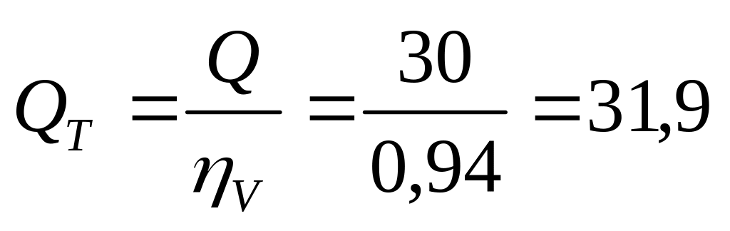 Пример. Определить основные размеры шестеренного насоса при подаче Q = 30 л/мин; номинальном давлении рном = 2 МПа, частоте вращения п = 1000 об/мин, z = 10, V = 0,94, мех = 0,95.