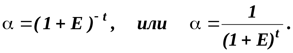 Множитель (1+Е)-n, с помощью которого приводится к сопоставимому виду настоящие и будущие деньги, называются коэффициентом дисконтирования( или коэффициент приведения к началу периода по времени, в годах):