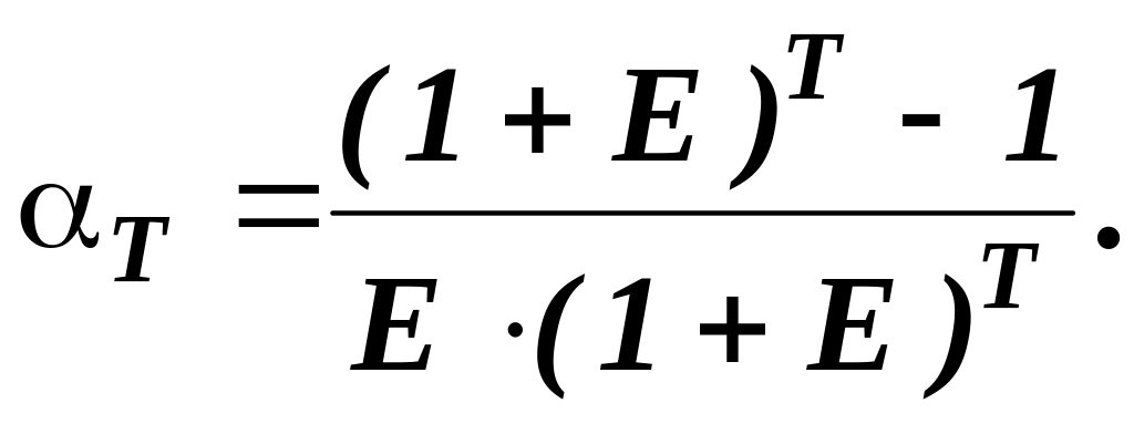 αT – дисконтирующий множитель (коэффициент приведения к началу по времени), равный (в годах):