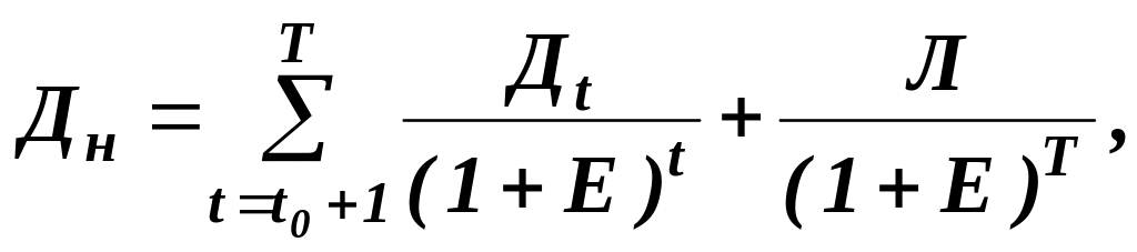 Е – норма дисконта (может обозначаться как «Е» или «i» и называться ставкой дисконта или внутренней ставкой дохода);