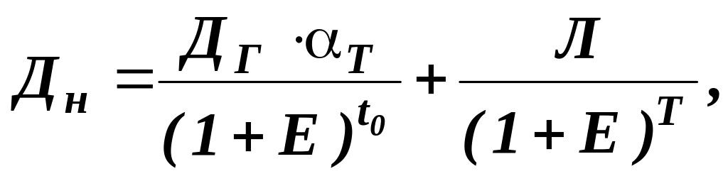 где Дн – сегодняшняя дисконтированная стоимость дохода (сегодняшняя сумма будущих доходов), получаемого через Т лет, руб.;