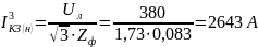 10) Определяем ток трехфазного короткого замыкания в начале линии: