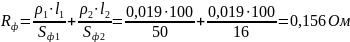 1) Определяем суммарное активное сопротивление фазной жилы 1 и 2 участков: