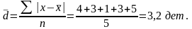 2. Более точно отразит вариацию показатель, который исчисляется на базе всех значений признака в данной совокупности. Одним из таких показателей является среднее линейное отклонение ( ), которое представляет собой среднюю арифметическую из абсолютных значений отклонений вариант от средней величины: