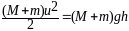 В результате столкновения маятник придет в движение и отклонится на угол , при этом кинетическая энергия переходит в потенциальную энергию и на основании закона сохранения энергии можно записать следующее уравнение: