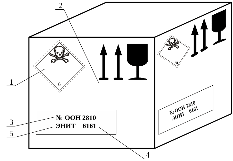 3 – номер ООН; 4 – классификационный шифр; 5 – транспортное наименование груза