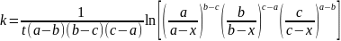 Рівняння для константи швидкості реакції першого порядку прийме вигляд: