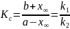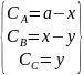 У початковий момент часу t=0 кінцева речовина . Речовина А=а , речовини В та С відсутні . Через деякий час t концентрація речовин становитимуть :