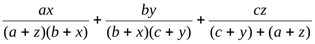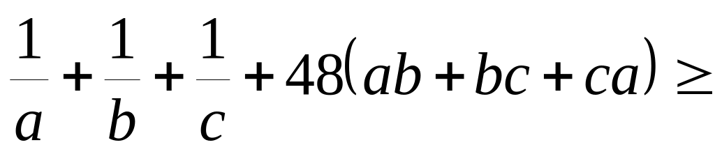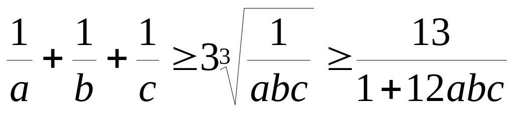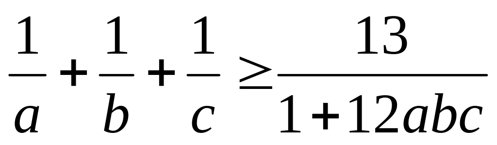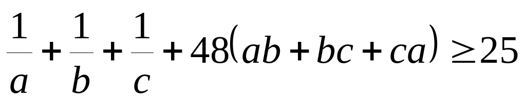 Решение: Это неравенство однородное для всех значений a, b, c. Так оно может быть нормализовано путем замены a+b+c=1 и мы придем к задаче 1.