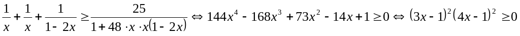 И еще одно замечание относительно случая d=25. Любые попытки использовать классические методы будут безрезультатными, так как там есть случай равенства кода a,b,c не равны между собой. Такие неравенства могут быть решены методом подсчета, но мы нашли элементарное решение не используя подсчеты. Эти неравенства могут быть сформулированы, не используя условие a+b+c=1.