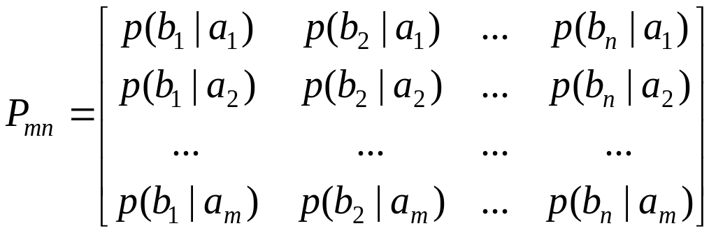 Условная энтропия дискретного источника сообщений с учетом парных сочетаний символов по формуле (2.1) будет:
