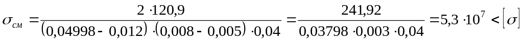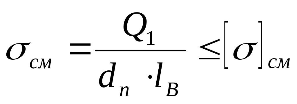прочность резиновых втулок проверяют по напряжениям смятия при допущении, что давление равномерно распределено по длине втулки: