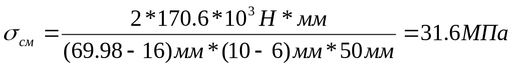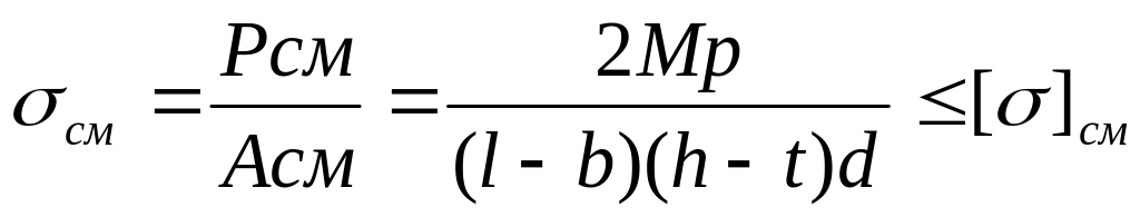 Для всех типов муфт выполняется проверочный расчет шпоночного соединения