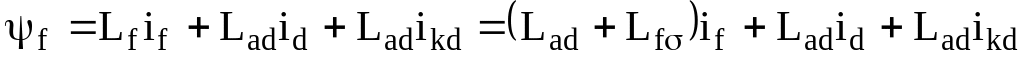R, Rf – активные сопротивления фазы обмотки статора и обмотки возбуждения соответственно; id, iq– токи статора по продольной d и поперечной q осям; ψd, ψq - потокосцепления обмоток статора по осям d и q;if- ток возбуждения; ψf – потокосцепление обмотки возбуждения; Rkd, Rkq - активные сопротивления демпферной обмотки по осям d и q;ikd, ikq– токи демпферной обмотки по осям d и q; ψkd, ψkq - потокосцепления демпферной обмотки по осям d и q; Ld, Lq и Lf - полные индуктивности обмоток статора по осям d и q и полная индуктивность обмотки возбуждения соответственно; Lad, Laq- взаимная индукция между обмоткой возбуждения и обмотками статора по осям d и q; Lσ, Lfσ - индуктивности рассеяния обмотки статора и обмотки возбуждения соответственно;Lkd, Lkq– полные индуктивности демпферной обмотки (массивного ротора) по осям d и q; Lkdσ, Lkqσ -индуктивности рассеяния демпферного контура по осям d и q; рп – число пар полюсов; ω – угловая скорость вращения ротора.