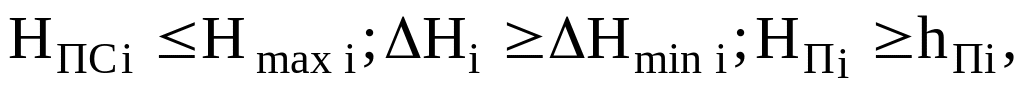 где Hmax i, Hmin i – разрешенные значения напоров и подпоров i-й НПС; hП – геодезическая отметка i-й перевальной точки на трассе нефтепровода.