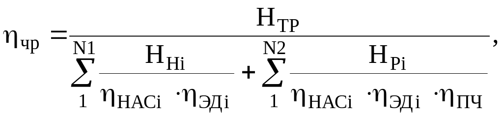 где НТР - потери напора в трубопроводе; Нр - напор, развиваемый нерегулируемым насосом; Нр - напор, развиваемый регулируемым насосом; ηнас. – КПД насоса [1]