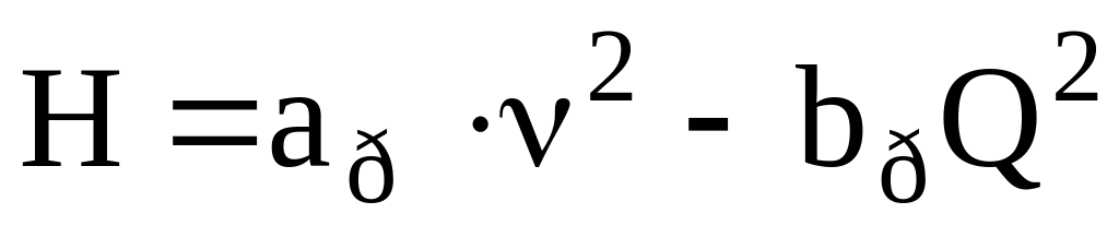 где aр и bр – коэффициенты напорной характеристики регулируемого насоса; ν = ω/ωНОМ - относительная скорость вращения насоса; ω – угловая частота вращения; ωном. - номинальная частота вращения;
