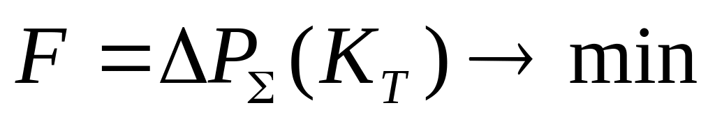 При решении задачи оптимизации положений устройств встречного регулирования напряжения трансформаторов, минимизируемой функцией в общем случае являются суммарные по системе потери активной мощности [3]. Математическая формулировка при этом состоит в определении минимума функции суммарных потерь активной мощности сети: