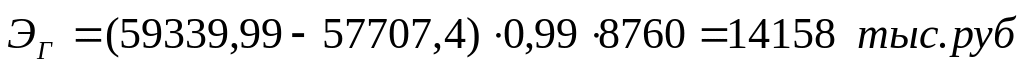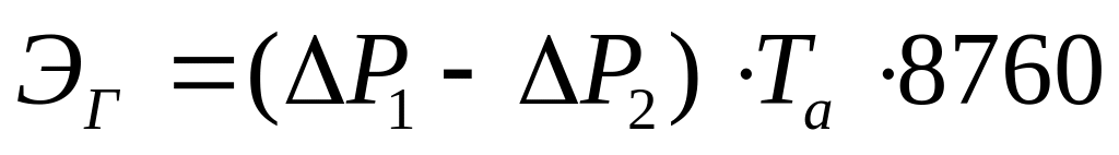 Где ЭГ – годовая экономия в оплате электроэнергии, кВт; ΔP1 – потери активной мощности до оптимизации, кВт; ΔP2- потери активной мощности после оптимизации, кВт; Та- тариф на потери активную энергию, руб/кВт∙ч принимается равным 0,99 руб/кВт∙ч.