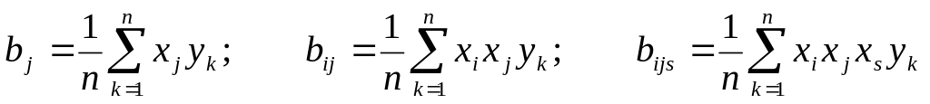 где коэффициенты регрессии для матрицы планирования можно найти, например, по следующим формулам[1]: