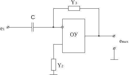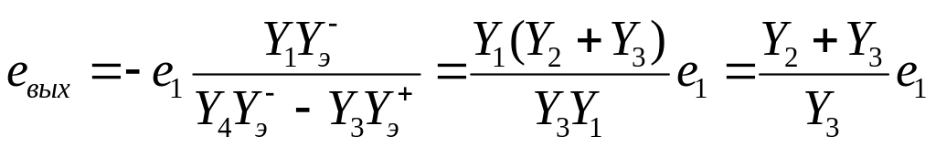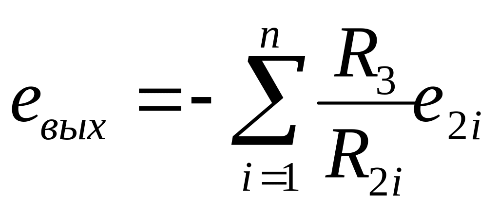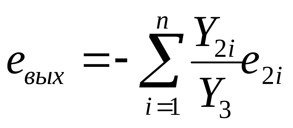Рассмотрим основные схемы включения ОУ и выведем зависимости между входными и выходными величинами, используя общее соотношение (А).