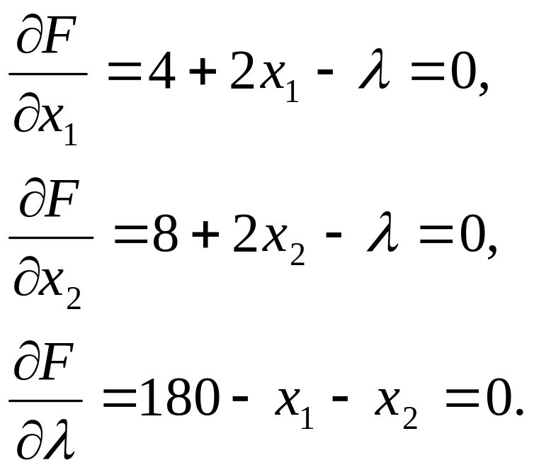 F(x1,x2,λ) = 4x1+x12+8x2+x22+λ(180-x1-x2),