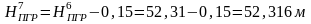 После подсчета аналогичным образом отметок головок рельсов всех путей проверяем, чтобы разность этих отметок на смежных путях не превышала 0,15м. В том случае, если существует превышение, увеличиваем отметку ПГР одного из путей до разности 0,15 м за счет увеличения толщины балластного слоя. Таким образом есть необходимости увеличить: