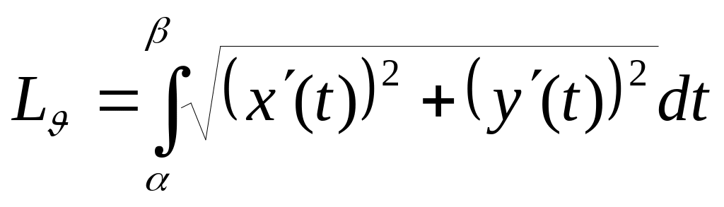 ФОРМУЛА ВЫЧИСЛЕНИЯ ДЛИНЫ ДУГИ, заданной параметрически.