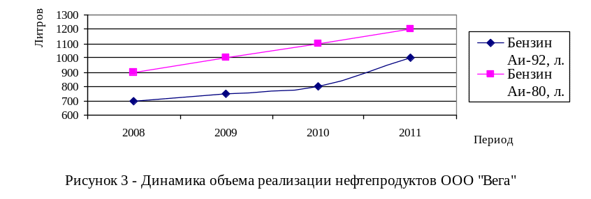 Как показано на рисунке 3, объем реализации бензина АИ-92 превышает объем реализации бензина АИ-80.